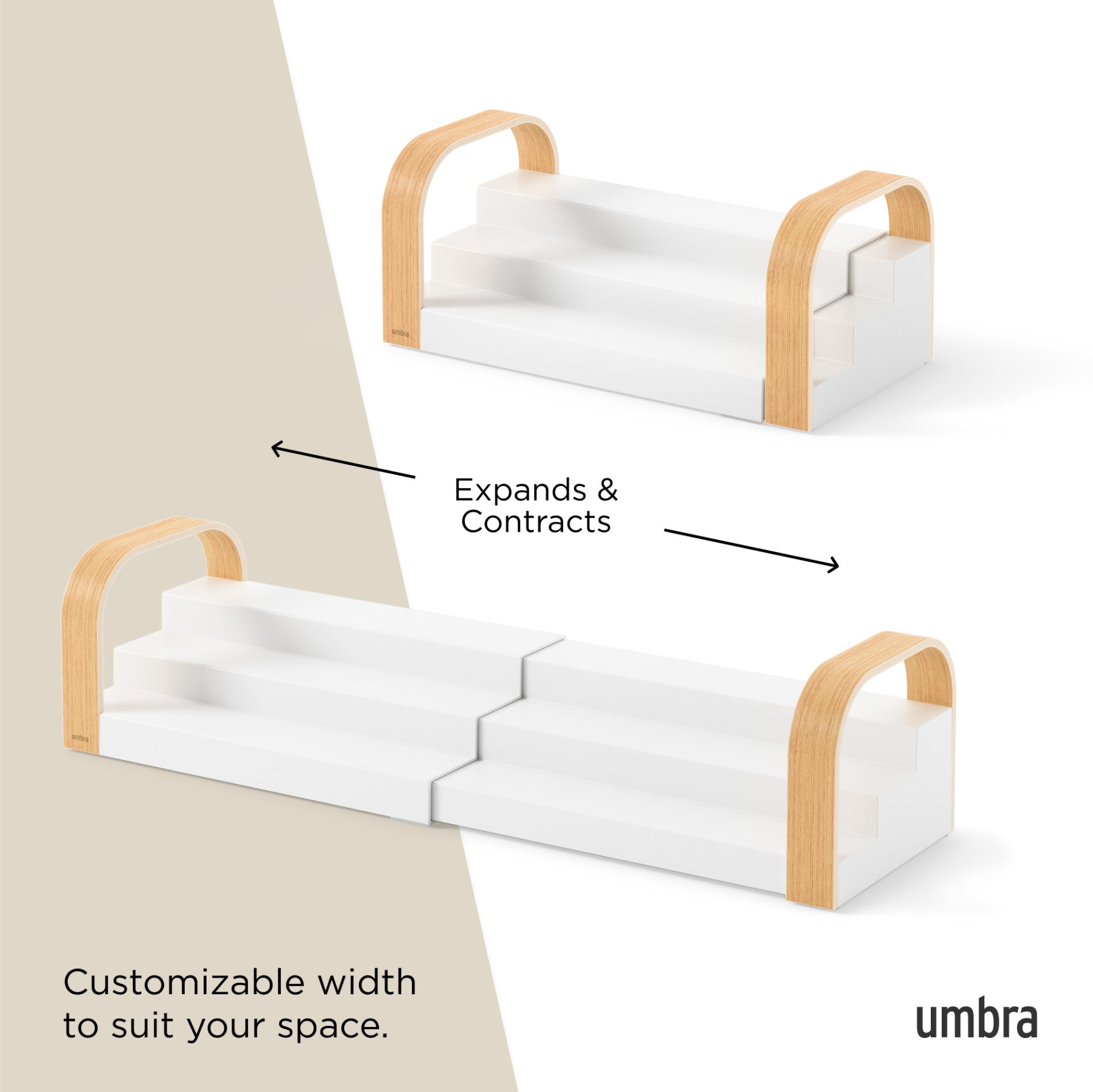 Our Bellwood Three-Tier Spice Shelf is the perfect way to keep your favorite spices organized and close at hand. With three expandable tiers, you can customize this shelf to best fit your cupboard, countertop or shelf space. Plus, it requires no assembly - just take it out of the box and get organized! Made with recycled plastic and sustainable wood materials, pair this with other items from our Bellwood Pantry Collection for a cohesive look. Can also be used in other spaces. Measures 20.75 x 6.25 x 5" (52.7 x 15.8 x 12.7 cm). ♻️ Made from 70% recycled plastic and comes from renewable wood sources. Wood is a unique natural material with variations in tone, texture, and grain. The product may vary from our imagery. ⓘ For Best Care: wipe with a clean damp cloth
