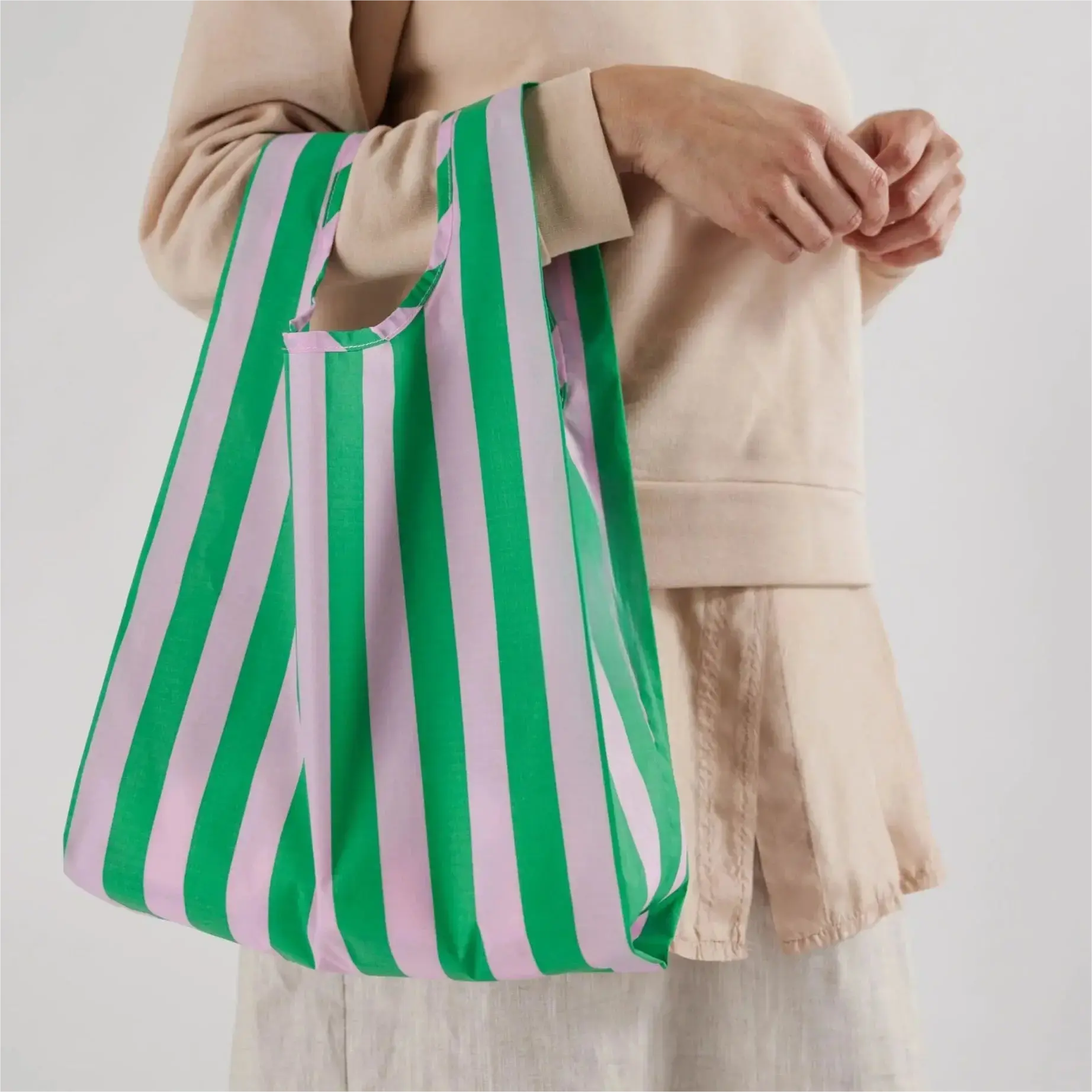 A smaller version of Baggu's best selling reusable shopping bag. Perfect for your lunch, a six pack, extra shoes, or a trip to the corner market.